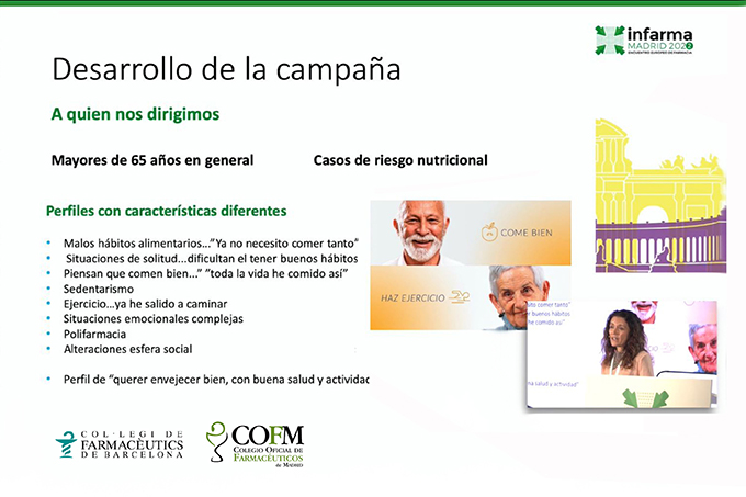 La sesión contó con la participación de Laura Mónica Pérez Bazán, Responsable clínico de Geriatría, Parc Sanitari Pere Virgili, Grupo de Investigación en envejecimiento, fragilidad y transiciones, Barcelona, quien analizó los requerimientos nutricionales y de actividad física en el envejecimiento, y de Maria Luisa Martínez Rodríguez, titular de Farmacia Barrio del Puerto. Coslada (Madrid), farmacia que participó activamente en la edición de 2021, y que nos compartió su experiencia.