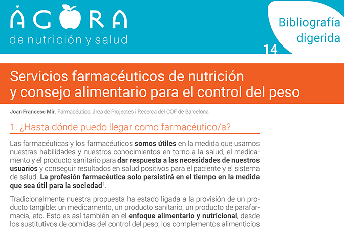 En esta entrega, detallamos los puntos claves para establecer de forma correcta servicios farmacéuticos de nutrición y consejo alimentario para el control de peso de la mano de Joan Francesc Mir, farmacéutico, área de Projectes i Recerca del COF de Barcelona.